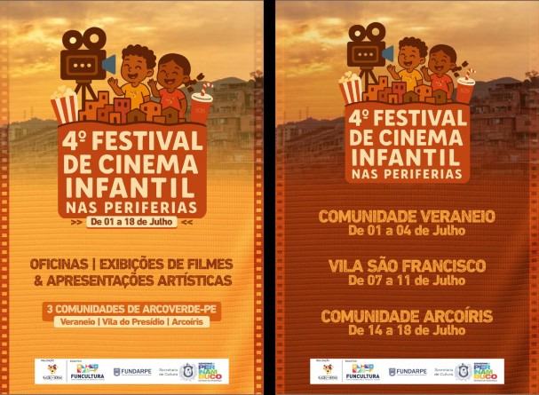 O 4º Festival de Cinema Infantil nas Periferias está pronto para levar muita arte e cultura para crianças de três comunidades de Arcoverde: Veraneio, Vila São Francisco, e Arco Íris. Com uma programação que integra cinema, fotografia e apresentações culturais, o festival promete uma viagem inesquecível pelo mundo da magia e da imaginação. O projeto é uma realização da Associação Cultural Raízes do Sertão, com incentivo do FUNCULTURA, Fundarpe, Secretaria de Cultura de Pernambuco e Governo de Pernambuco.