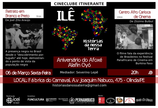 Além da homenagem ao afoxé, o cineclube propõe com as exibições de “Retrato em Preto e Branco” (de Joel Zito Araújo) e “Centro Afro Carioca de Cinema” (de Zózimo Bulbul), focar a identidade cultural afro-brasileira e história comum dos grupos culturais envolvidos na programação. O Cineclube Itinerante Ilê é uma realização do ICEI Brasil (Instituto de Cooperação Econômica Internacional), possuindo incentivo do Governo de Pernambuco, através do Funcultura.