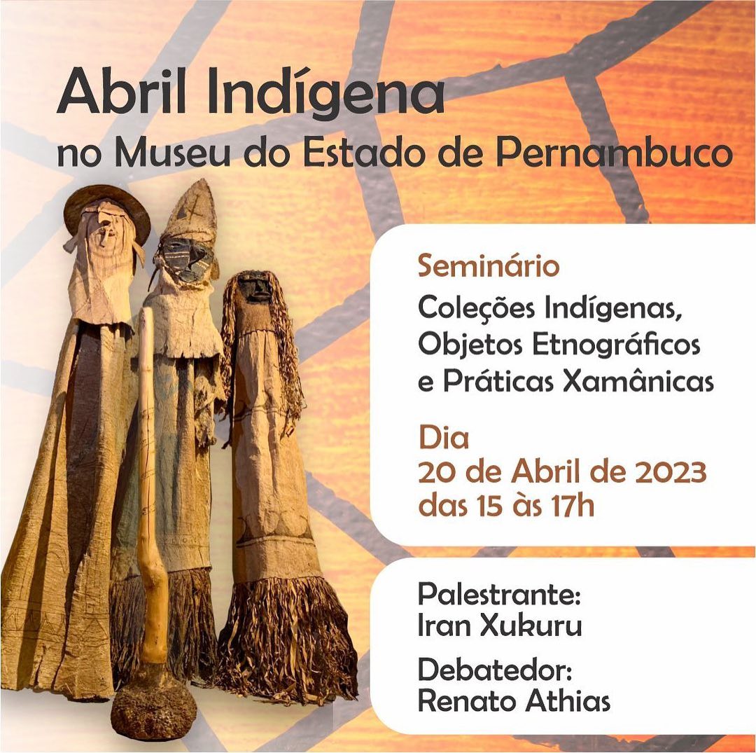 O Dia dos Povos Indígenas, celebrado nesta quarta (19), é um marco na memória do Brasil. A data lembra que é preciso, cada vez mais, estimular o conhecimento sobre os povos originários do país que, por tantos anos, foram invisibilizados. Seguindo o propósito de promover o debate e a pesquisa a respeito do tema, o Museu do Estado de Pernambuco (MEPE) realiza nesta quinta (20) o seminário “Coleções indígenas, objetos etnográficos e práticas xamânicas”, das 15h às 17h, reunindo os pesquisadores Iran Xukuru e Renato Athias.