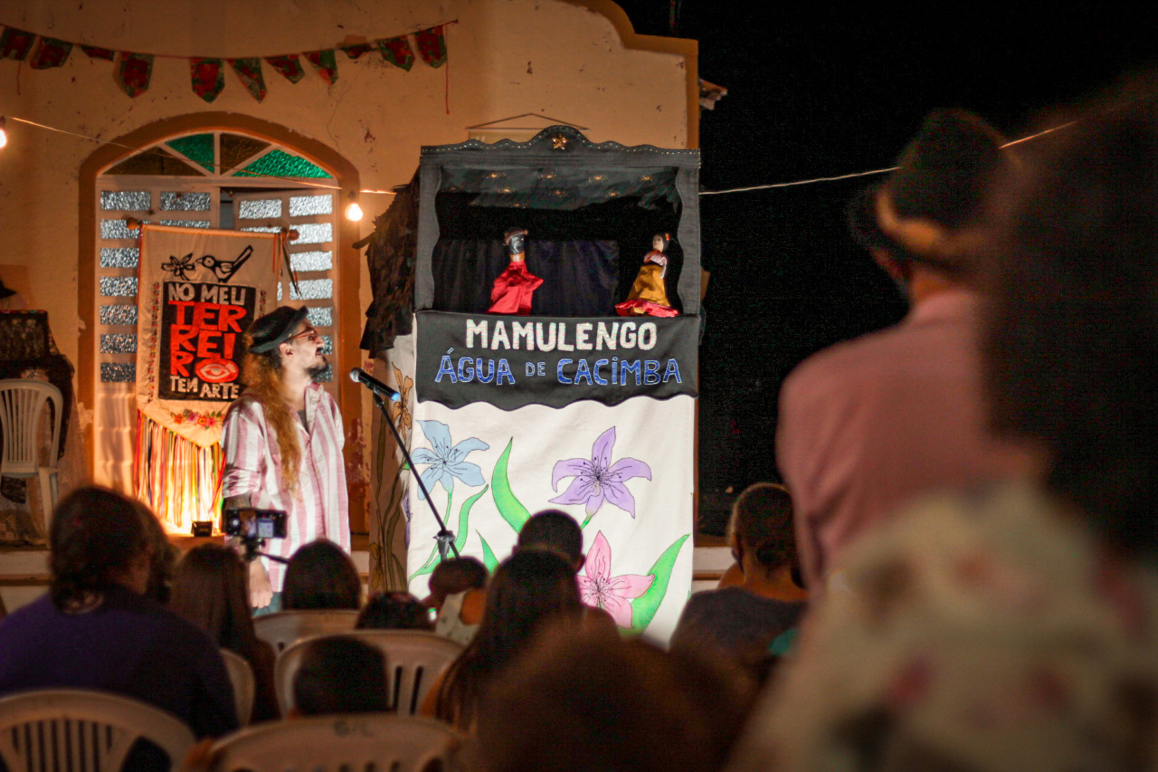 Às 15h, o Grupo Água de Cacimba apresenta A Flor do Mamulengo, espetáculo com teatro de bonecos que lança reflexões sobre a vida e do trabalho no campo por meio da poética presente na tradição dos mamulengos. O enredo encena o cotidiano familiar do vaqueiro Benedito, da agricultora Joaninha e de Dona Prazeres, parteira que vem ajudar o filho do casal a nascer. A personagem é uma homenagem a Maria dos Prazeres de Souza, parteira tradicional e enfermeira obstétrica, patrimônio vivo do estado de Pernambuco. A maior parte das músicas que animam a brincadeira são de autoria do grupo, que traz também algumas canções populares, todas tocadas ao vivo. Em seguida, às 15h30, mais teatro de bonecos com A Princesa e o Dragão, cuja encenação é inspirada nas fábulas medievais, nas histórias fantásticas e nos contos de velhas torres abandonadas no meio da floresta, cavaleiros de escudo e espada, dragões que cospem fogo, princesas desamparadas, gaitas mágicas. É uma fábula contada por onze bonecos de luva e de vara articulados.