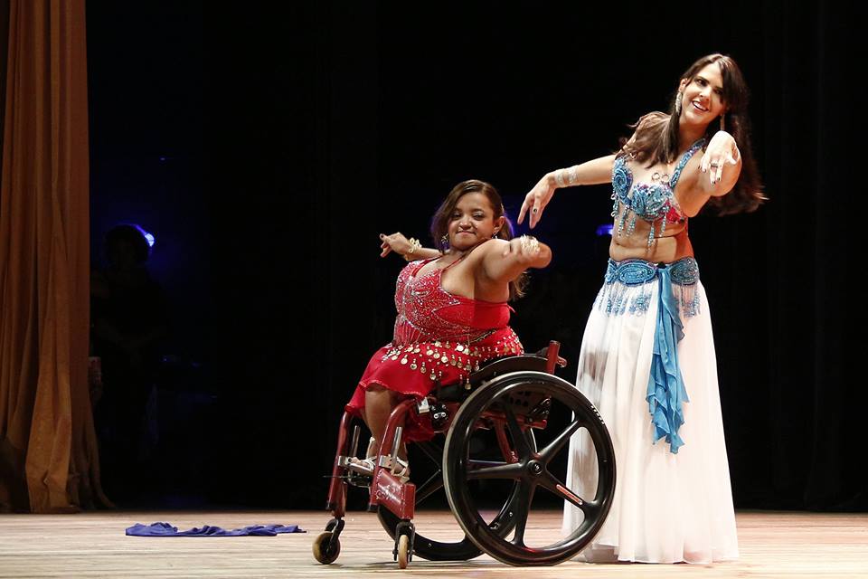 Renata Tarub, idealizadora do projeto de inclusão artística, com a dançarina Nina, que estará na programação interpretando a dança do ventre.