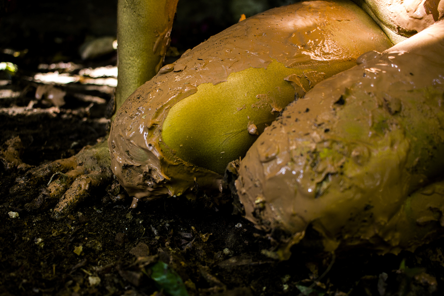 A performance foi registrada pelo fotógrafo Marcelo Vidal e teve impressão fine art, em tiragem única. “Conheci Marcelo por causa da exposição e a sintonia foi imensa, ele esteve sempre disponível e fez um trabalho muito delicado, fez o registro de algo que seria impossível registrar sozinha, que são as coisas que nascem quando a gente resolve se reconstruir”, complementa a artista. Mayra utilizou pó metálico e argila medicinal para revestir seu corpo. A série revela a retirada da argila do corpo, “até atingir essa pele interna, o significado mais profundo, a natureza mais profunda, então, há um sentido grande de libertação e espero tocar as pessoas da mesma forma que fui tocada pelo processo”, convida.