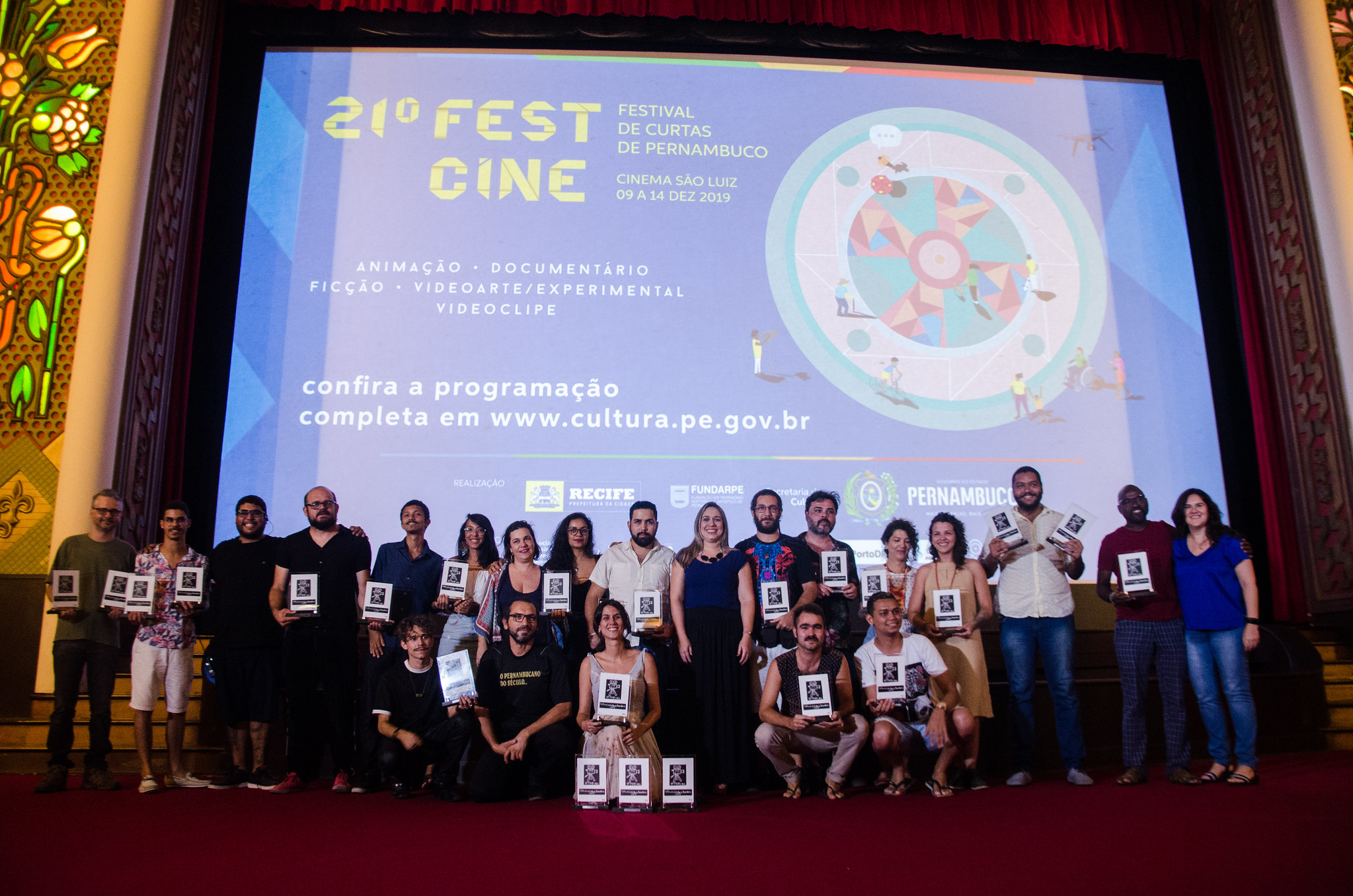 Depois de uma semana intensa de debates, oficinas e exibições de curtas pernambucanos, a 21ª edição do Festival de Curtas de Pernambuco (FestCine) chegou, neste sábado (14), à sua noite de encerramento no Cinema São Luiz, o templo do cinema pernambucano. O panorama desta edição – que contou com um público de quatro mil pessoas em todas as sessões – foi composto por 49 filmes, exibindo uma grande diversidade de temas, estéticas, narrativas e processos de realização. Ficções, videoartes, documentários, animações e videoclipes integraram as programações de duas mostras competitivas, a Mostra geral e a de Formação. Os vencedores receberam um total de R$ 58,5 mil em premiações, além do Troféu Fernando Spencer para os filmes que concorreram na Mostra Competitiva Geral.