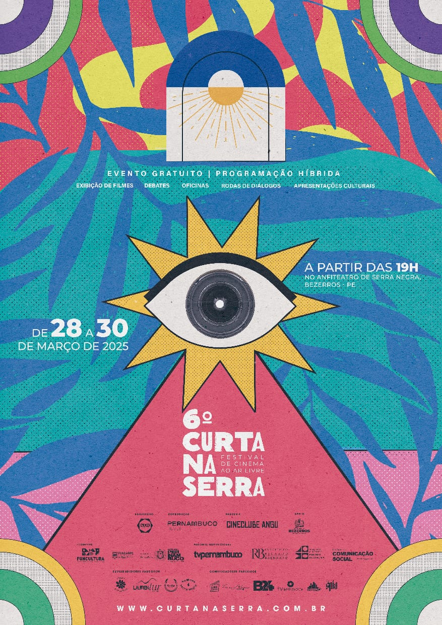 A 6ª edição do Curta na Serra – Festival de Cinema ao Ar Livre está chegando para mais uma celebração do audiovisual independente, promovendo três dias de programação gratuita em Serra Negra, distrito de Bezerros – PE. Entre os dias 28 e 30 de março de 2025, o Anfiteatro de Serra Negra se transforma em um grande cinema a céu aberto para receber mais uma edição do festival. O evento, que se consolida como um dos principais encontros de cinema no Estado, promoverá uma programação gratuita com exibições de filmes, debates, homenagens, apresentações culturais e atividades de formação, reunindo realizadores e apreciadores do audiovisual.