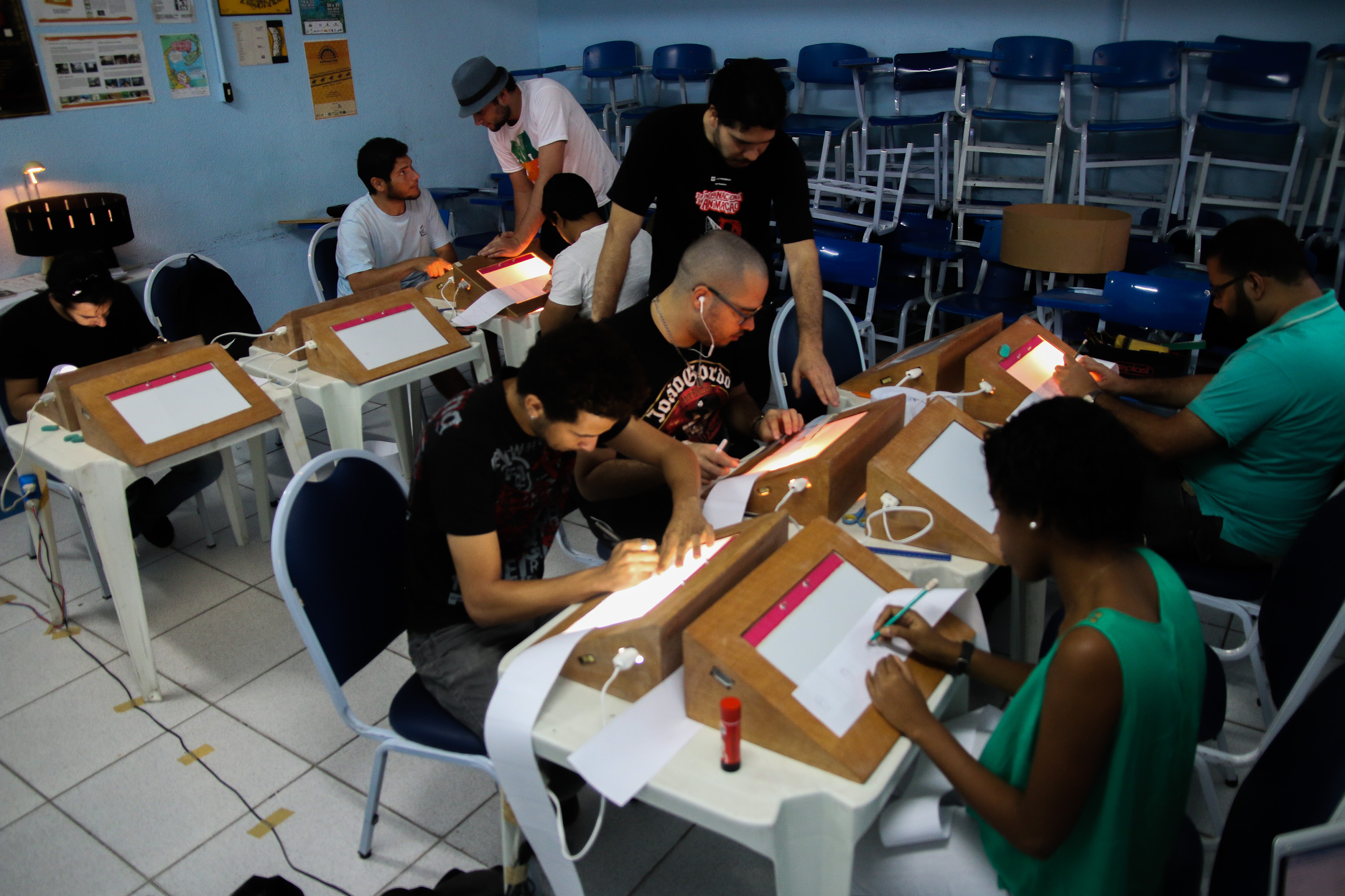 A oficina ministrada pelo ponto de cultura Cinema de Animação, de Gravatá, tocado pelo cineasta Lula Gonzaga – um dos homenageados do 16º FestCine – tem sido o pontapé inicial para aqueles que se encantam com o universo da animação e pretendem investir numa carreira na área. Tiago Delácio e Paulo Monteiro são os responsáveis por ministrar a oficina durante o FestCine. A partir de um método criado por Lula, há mais de 30 anos, que converge para formas mais simples e artesanais de animação, eles imbuem os alunos de retratarem, em suas criações, sua realidade, seus signos identitários mais próximos. “A nossa ideia é trabalhar com traços da xilogravura e temas regionais. Fazer com que qualquer jovem, em qualquer lugar onde estiver, possa fazer uma animação. Procuramos ter esse papel de formação com esses jovens, que podem utilizar isso como uma oficina de formação cidadã ou se profissionalizar, buscar novas técnicas, e quem sabe, alçar voos mais altos. Eu e Paulo fomos formados nessa oficina, com Lula”, explica Tiago.