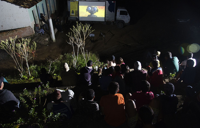 Para chegar à porta da pequena igreja de Nossa Senhora de Nazaré, que fica logo na entrada do Quilombo Timbó, um dos mais antigos de Pernambuco, é preciso subir uma escadaria. Às 19h, olhar de baixo a igreja e ver por cima o céu raro, escuro e estrelado de Timbó, fazia parecer que alguém havia apagado as luzes de uma verdadeira sala de cinema. Sentados na escadaria como em uma arquibancada, os moradores da comunidade esperavam começar o “Cinema na Estrada”, ontem à noite (26/7). O público, composto sobretudo de crianças, parecia ansioso para o início da sessão.