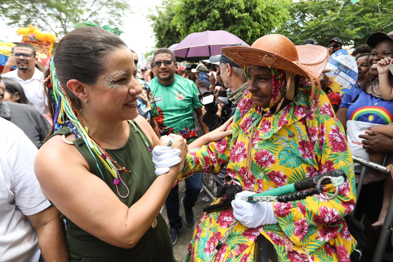Hesíodo Góes/SecomAcompanhando as manifestações culturais do carnaval de várias partes do Estado, a governadora Raquel Lyra e a sua vice Priscila Krause participaram, nesta segunda-feira (12), do tradicional cortejo das nações de Maracatu de Baque Solto no município de Nazaré da Mata, na Zona da Mata Norte de Pernambuco. A gestora foi recepcionada pela agremiação Coração Nazareno, formada apenas por mulheres, e recebeu, como símbolo de honra, uma gola de maracatu, um dos principais adereços do movimento cultural declarado Patrimônio Cultural Imaterial do Brasil.