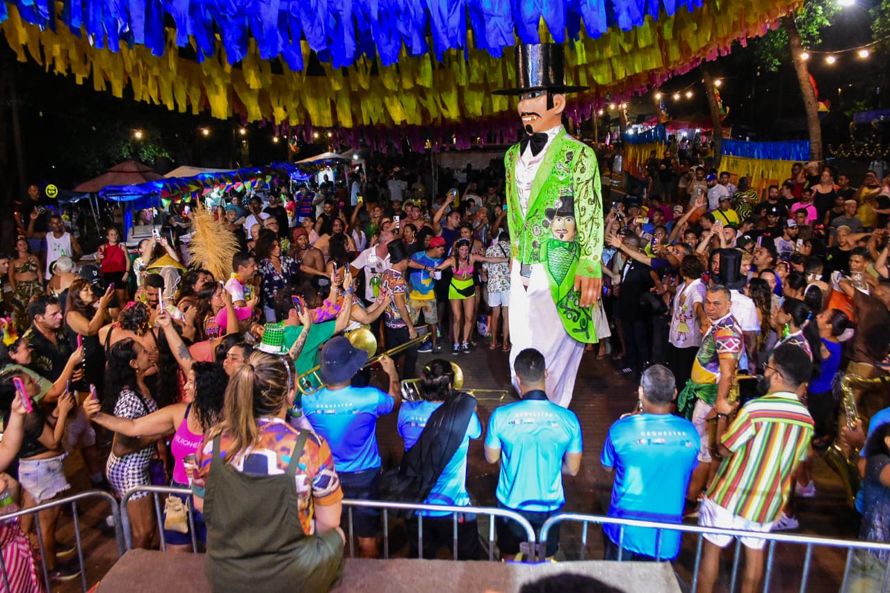 O público já estava na praça aproveitando a programação da terça-feira, quarto dia de Carnaval, que iniciou às 16h, com oficina de frevo para as crianças e, depois, a partir das 19h, seguiu noite adentro com uma maratona de shows. Subiram ao palco Nego Noronha e Karynna Spinelli, com o samba, e Benil, com o frevo. E lá pela meia-noite (no horário do Recife), o mistério tomou conta da ilha. Os instrumentos de sopro da orquestra de frevo anunciaram a chegada do convidado especial. E eis que o Homem da Meia-Noite apareceu, encantando crianças e adultos e colocando todo mundo pra frevar, dando a volta na praça e descendo a ladeira em direção ao centro histórico, acabando o percurso no terminal turístico do Cachorro.