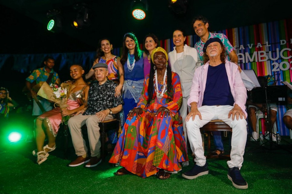 “É uma noite muito especial para todos nós que fazemos o Governo de Pernambuco, poder homenagear três ícones dos nossos carnavais. Lia de Itamaracá e Claudionor Germano, que são Patrimônios Vivos, e Alceu Valença, juntos, contam a história dos Carnavais pernambucanos”, ressaltou a secretária de Cultura, Cacau de Paula.