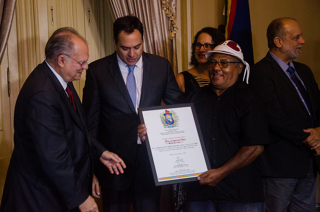 Mestre Zé Lopes recebeu o título de Patrimônio Vivo de Pernambuco das mãos do governador Paulo Câmara, em dezembro de 2016