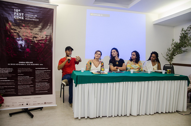 Participantes: Yanara Galvão (Fepec/ Diretoria de Formação do Conselho Nacional de Cineclubes), Mariana Porto (Escola Engenho/ Inventar com A diferença), Alexandre Soares (Cineclube Taquary / Curta Taquary / Criancine) e Fabiana Maria (coordenadora pedagógica do Cineclube Bamako).