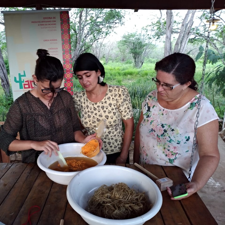 Através do incentivo do Funcultura, Solânia, Renata e a artesã Maryjean Carapeto ministraram uma oficina de dezembro de 2017 até maio deste ano para repassar a técnica para a comunidade de Santa Cruz do Capibaribe, Poço Fundo e proximidades. “Não é um processo difícil. Ele é trabalhoso, mas qualquer pessoa pode executar essa técnica porque não envolve nenhum equipamento complexo”, observa Renata, cujos alunos da oficina confeccionaram bolsas, sapatos, abajures, colares, brincos e aplicações para roupas.
