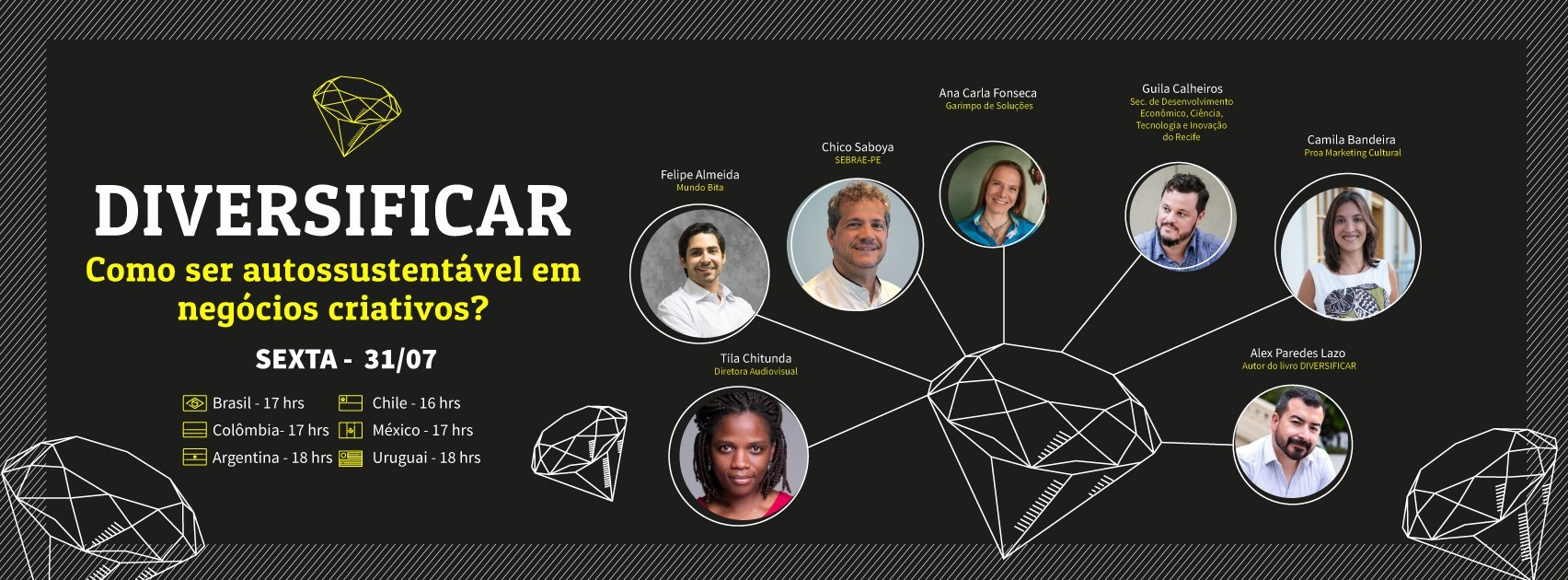 “O livro é um guia para a construção da autossustentabilidade de artistas, gestores criativos e produtores culturais que necessitam monetizar seus produtos e serviços”, afirma o autor. A edição original em espanhol, lançado no Chile há pouco mais de 2 meses, atingiu mil downloads em 25 países nas Américas e na Europa e chega ao Brasil em formato digital no link www.livrodiversificar.com, a partir do dia 31 de julho, durante a sua participação neste diálogo com Sebrae e Porto Digital.