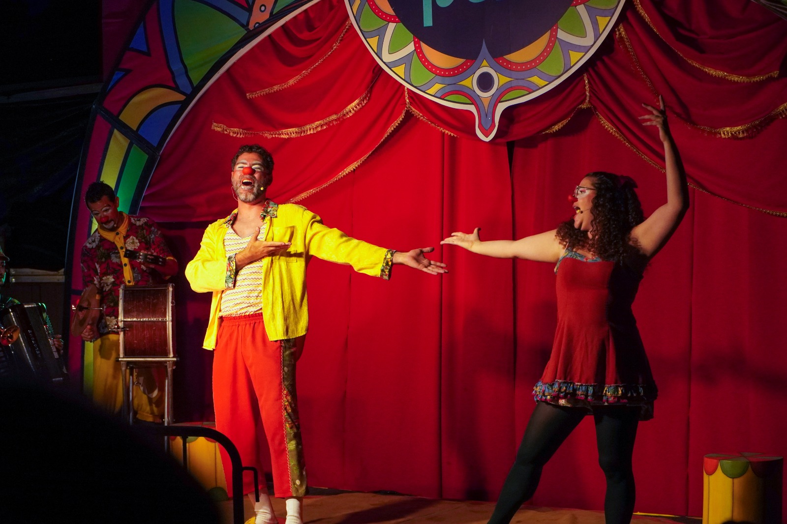 Às 17h, a irreverência da palhaçaria tomou conta da lona com o espetáculo “Riso Interior”, da companhia Teatro de Retalho, de Arcoverde. Fundado em 2008, o grupo apresentou uma montagem com contação de histórias, banda marcial ao vivo e muita interação com o público, resgatando memórias da infância e promovendo o riso como forma de afeto.