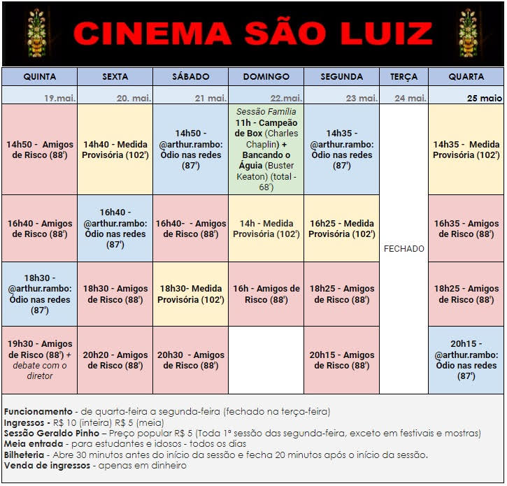Redes sociais (Instagram, Twitter e Facebook): @cinesaoluizreal