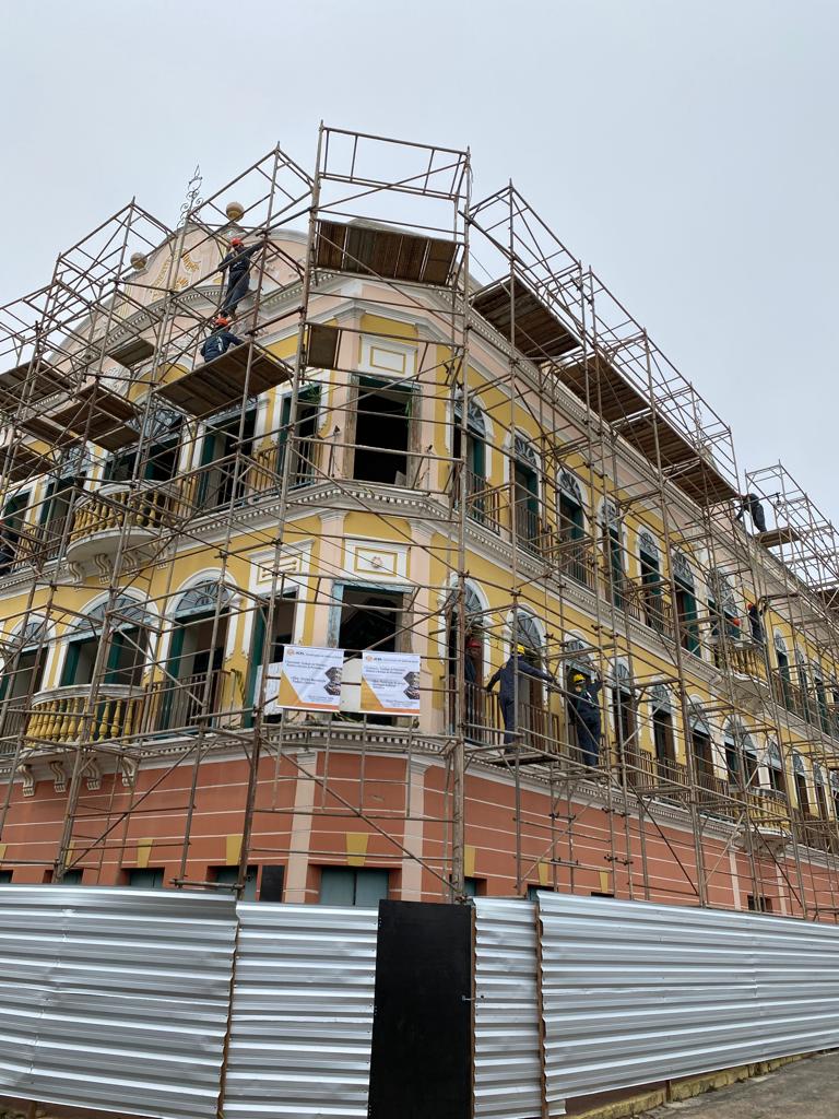 Comemorando seu centenário em 2022, o Theatro Cinema Guarany recebe obras de requalificação e manutenção da edificação no valor estimado em cerca de R$ 1,2 milhões, com prazo de entrega até a segunda quinzena de julho