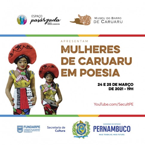O Espaço Pasárgada e o Museu do Barro de Caruaru, espaços culturais gerenciados pela Secult-PE/Fundarpe, realizam em conjunto uma transmissão on-line para homenagear as poetas da Região do Agreste. “Mulheres de Caruaru em Poesia” acontece em duas lives, na quarta (24) e na quinta-feira (25), às 19h, no YouTube.com/SecultPE. A iniciativa é parte das ações pelo Dia Internacional da Mulher, que rendeu homenagens durante o mês de março. Nos encontros, 12 mulheres de profissões diversas que se expressam através da poesia terão espaço para mostrar suas criações e falar sobre a poesia, a literatura e a arte do ponto de vista feminino de quem vive na maior cidade do Agreste pernambucano.
