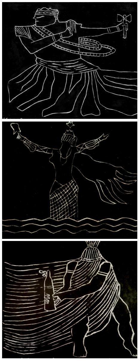 A exposição é resultado do projeto Registro e Resgate das Histórias dos Orixás, que, através de uma série de oficinas de xilogravura em comunidades quilombolas do Agreste de Pernambuco, buscou valorizar ”as silhuetas das imagens mergulhadas na imensidão do corpo negro”, como conta a coordenadora de exposições da Torre Malakoff, Maria Fachin. De acordo com ela, todas as obras da mostra foram elaboradas com a técnica fechada, método que possibilita que “a imagem se desprenda do suporte e adquira movimentos que perpassam a realidade tátil, adquirindo essa imaterialidade. As xilogravuras, de alguma maneira, evocam a necessidade da transcendência para vida humana”.
