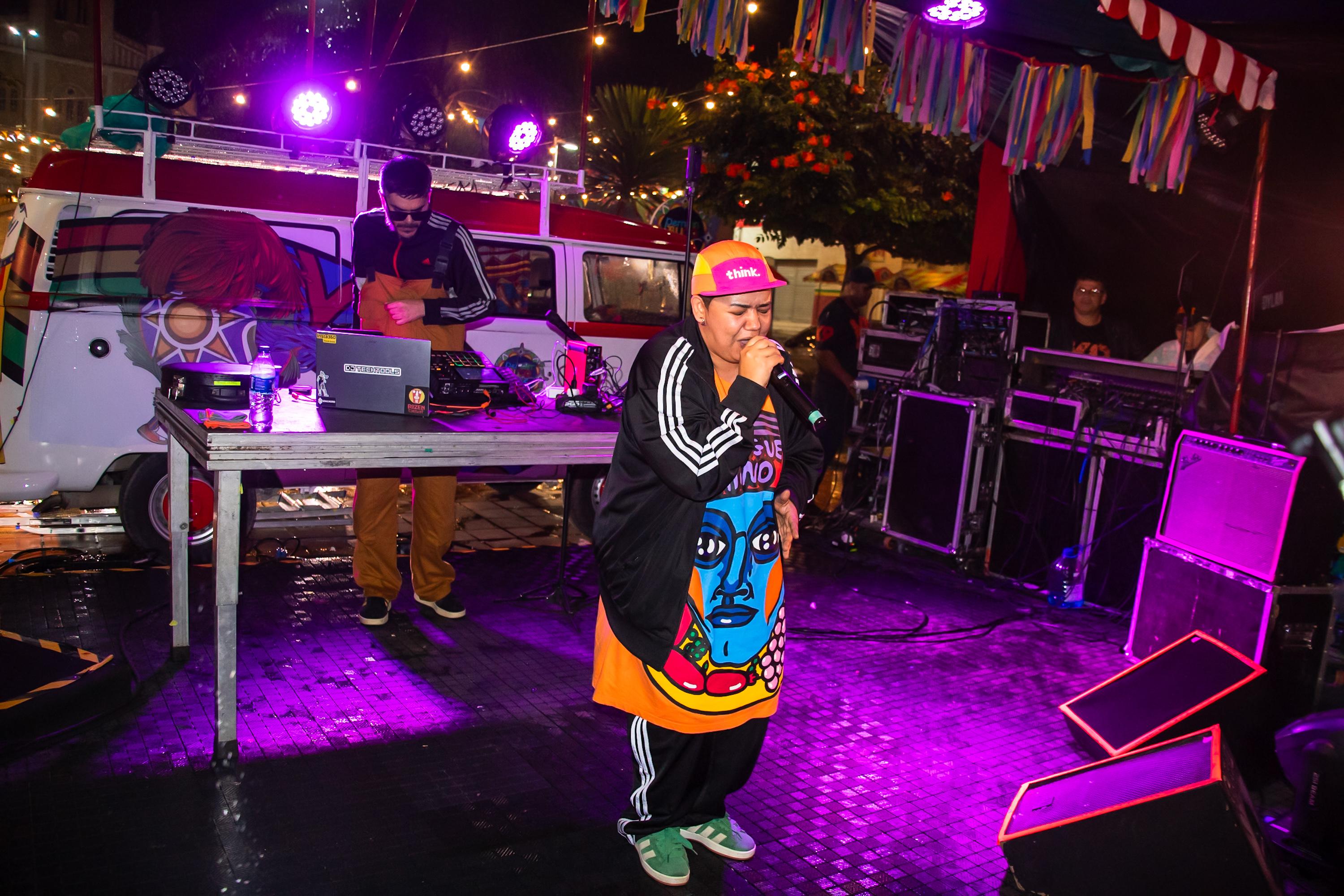 A noite na Praça Major França atingiu seu auge por volta das 20h com o show de Barbarize, que lotou a praça e fez o público vibrar com sons urbanos genuinamente pernambucanos, com o seu “afro trap”. Sob o comando dos vocalistas Bárbara Vitória e YuriLumin, o grupo apresentou um repertório de ritmos afrodiaspóricos, passando pelo afrobeat e reggaeton, e fez referência à cena manguebeat com a faixa “Mangue”, que evocou os acordes da Nação Zumbi e o legado de Chico Science. Bailarinos e coreografias interativas completaram a apresentação, transformando o espaço em uma grande celebração da cultura urbana.