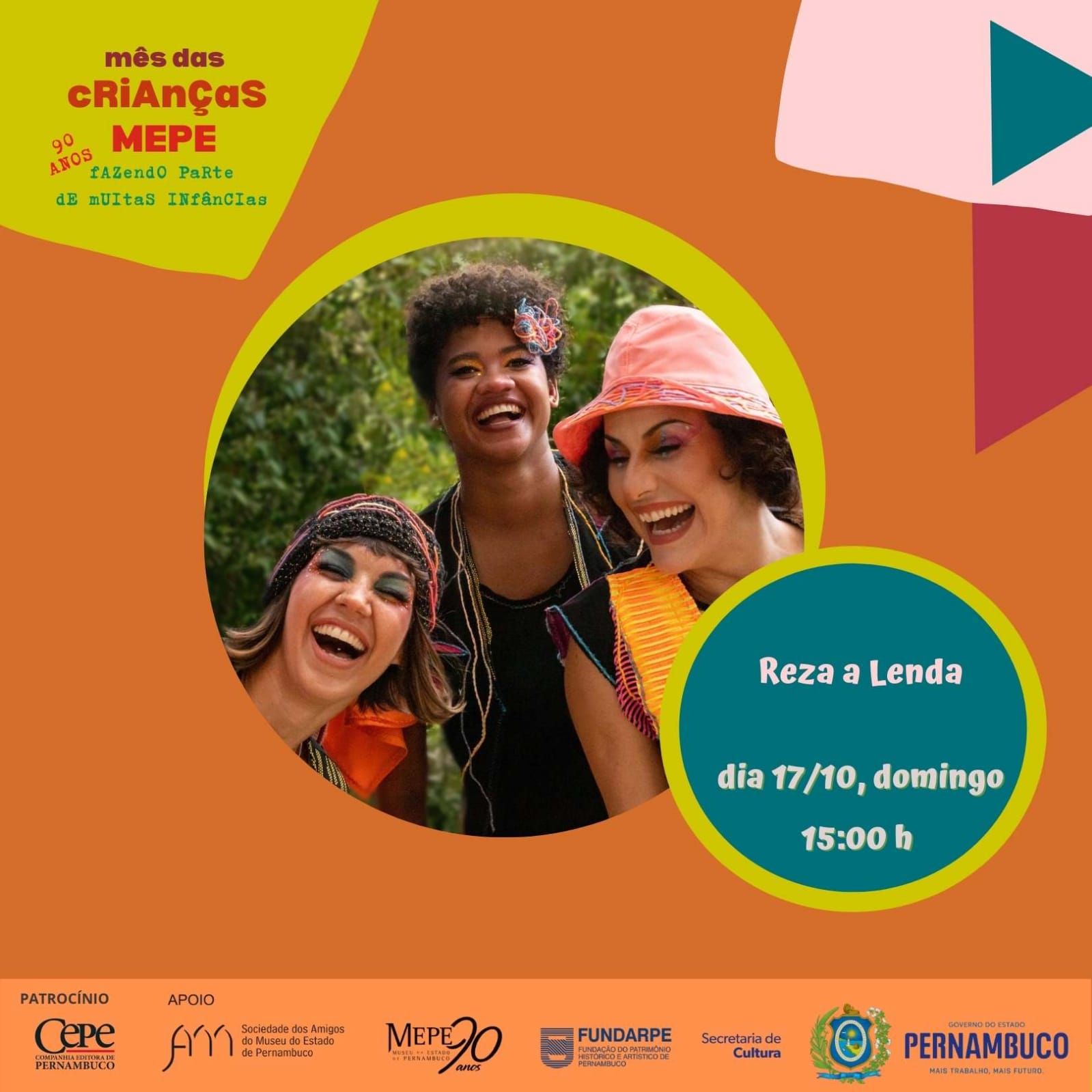 Já no dia 17, de outubro, o grupo apresentará o espetáculo “Reza a Lenda Show”. Um musical show em que o grupo Tapete Voador traz em seu repertório canções próprias compostas para o espetáculo narrativo de mesmo nome. São canções que cantam e contam as seguintes lendas pernambucanas: encanta-moça, palhaço do coqueiro, comadre fulô, alamoa, pai do mangue, frevo da cabra cabriola, reza a lenda e a pedra que engole gente, em ritmo de maracatu, xote, coco, afoxé, entre outros.