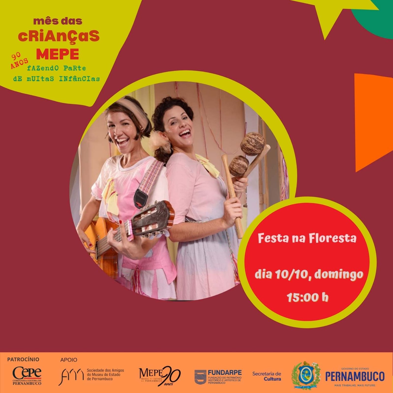 As apresentações ficarão por conta do grupo artístico O Tapete Voador, que vai pousar no MEPE neste mês de outubro com dois espetáculos musicais. No próximo domingo (10), às 15h, o grupo exibirá o espetáculo “Festa na Floresta- Cantorias pelo meio ambiente”. Neste espetáculo narrativo Mila Puntel e Bruna Peixoto passeiam pelo universo mágico do folclore brasileiro com contação de histórias, interpretação e cantorias que valorizam os personagens da nossa cultura popular, além de promover o amor e os cuidados com o meio ambiente. Este projeto é inspirado na obra literária de Lêda Sellaro, e foi escolhido pela ONU para integrar seu Clube de Leitura.