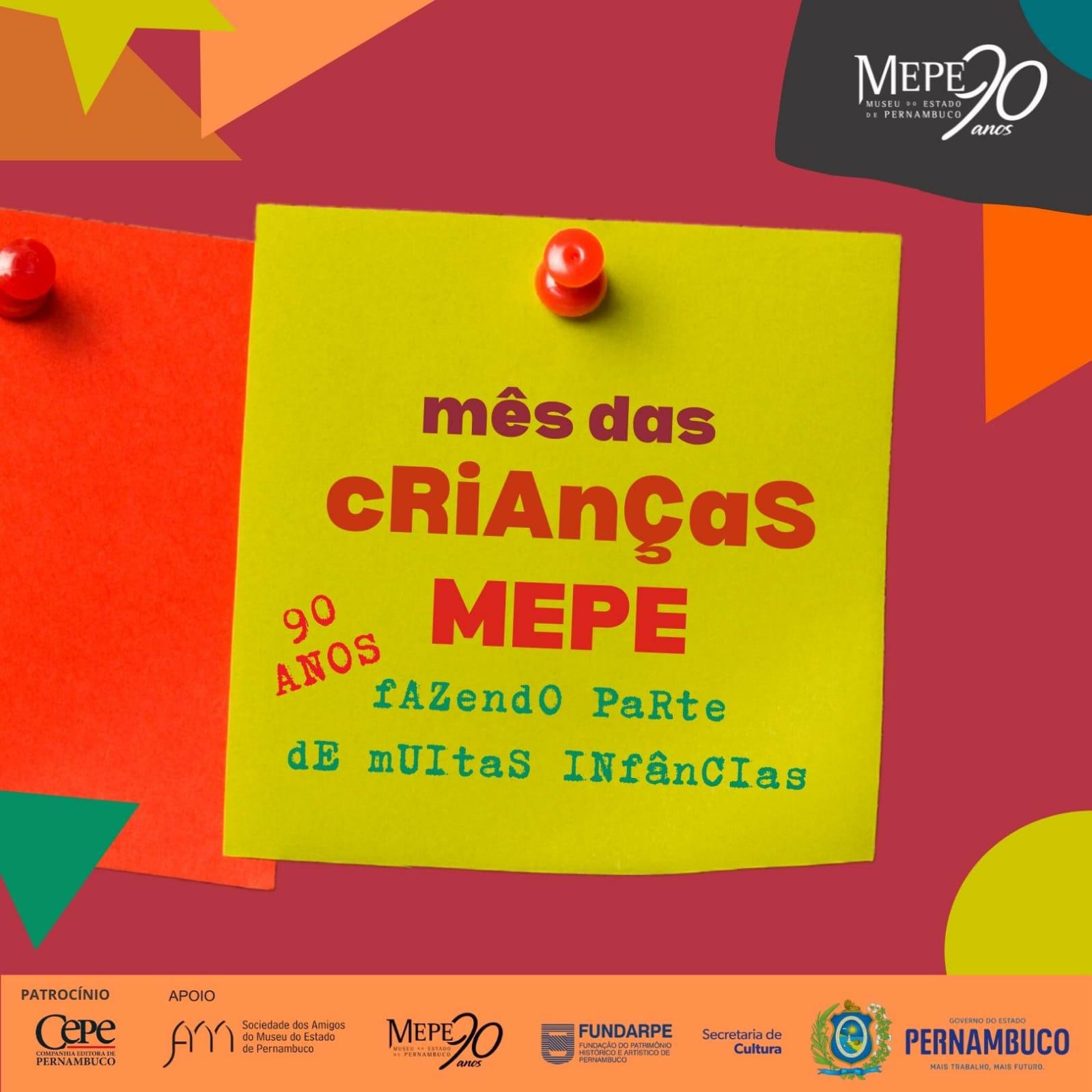 O Museu do Estado de Pernambuco (MEPE), empenhado com o compromisso educativo e cultural, preparou uma agenda especial para celebrar o mês das crianças. A programação infantil começa neste domingo (10), a partir das 15h, com espaço interativo para as crianças aprenderem brincando, através de jogos, desenhos e pinturas, com muita história, arte e cultura, tudo preparado pelo educativo MEPE, com a produção da ACria e patrocínio da Companhia editora de Pernambuco – CEPE.