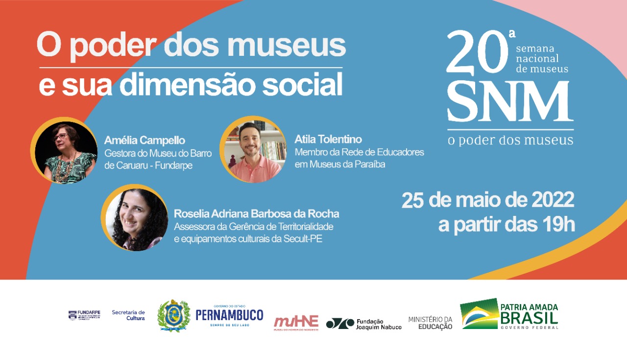 O Museu do Barro de Caruaru (Mubac) promove, na quarta, dia 25 de maio, às 19h, o encontro virtual “O Poder dos Museus e a sua dimensão social”. A transmissão ocorre no canal oficial da Secult-PE/Fundarpe: www.youtube.com/SecultPE. O evento integra a programação nacional da 20ª Semana Nacional de Museus. A discussão terá as participações de Atila Tolentino, membro da Rede de Educadores em Museus da Paraíba, de Amélia Campello, gestora do Mubac, e da museóloga Roselia Adriana Barbosa da Rocha, responsável pela mediação.
