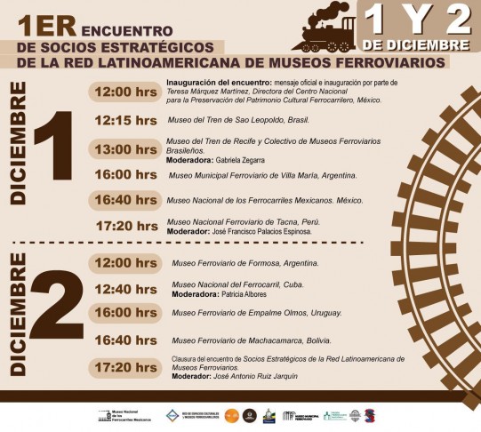 O evento contará com representantes do Brasil, Argentina, Bolívia, Cuba, México, Peru e Uruguai. Direcionado às equipes dos museus ferroviários envolvidos, o evento tem como proposta aproximar os espaços museais destinados à preservação do patrimônio ferroviário latino-americano, estabelecendo a troca de experiências e permitindo que as instituições possam se conhecer melhor, bem como os acervos guardados por cada espaço e quais projetos estão sendo desenvolvidos por cada museu.