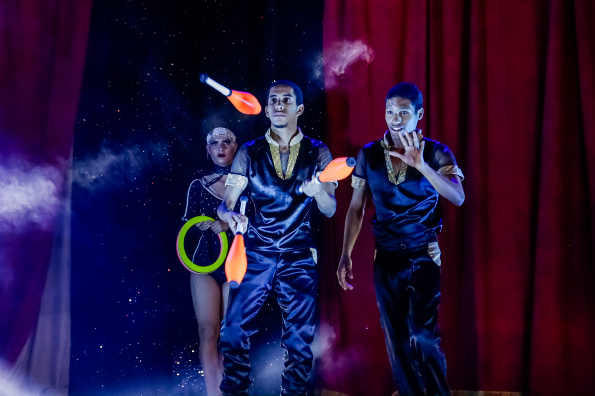 Além da palhaçaria, apresentação também teve números de malabarismo
