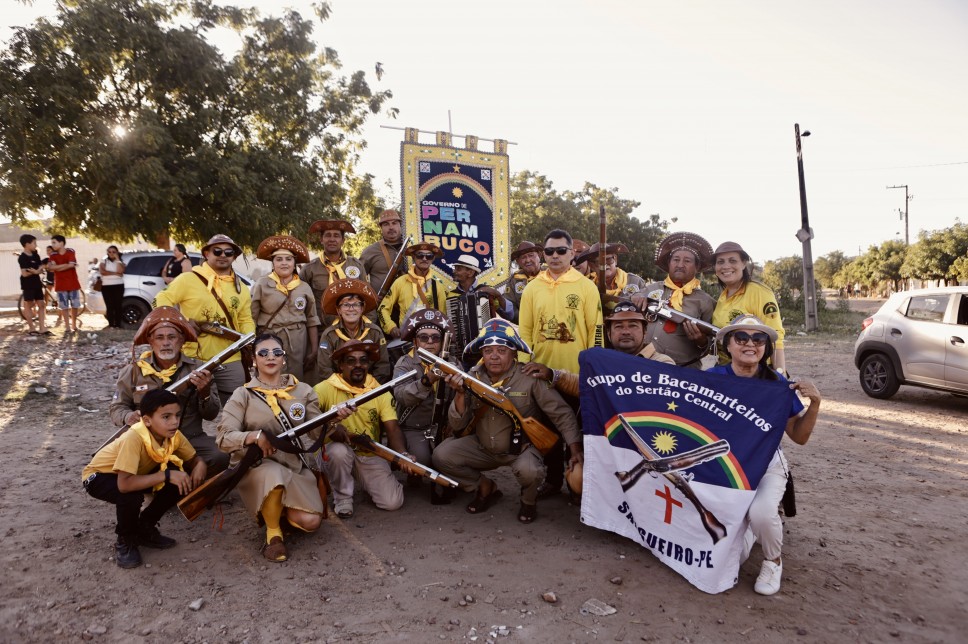 “É um prazer imenso e uma satisfação sem tamanho participar do cortejo trazendo a cultura do bacamarte e fazer valer o nosso sangue nordestino com a valorização das nossas culturas populares”, disse Mikaelly Gomes, diretora da Associação Cultural dos Bacamarteiros Baixa Verde de Santa Cruz da Baixa Verde