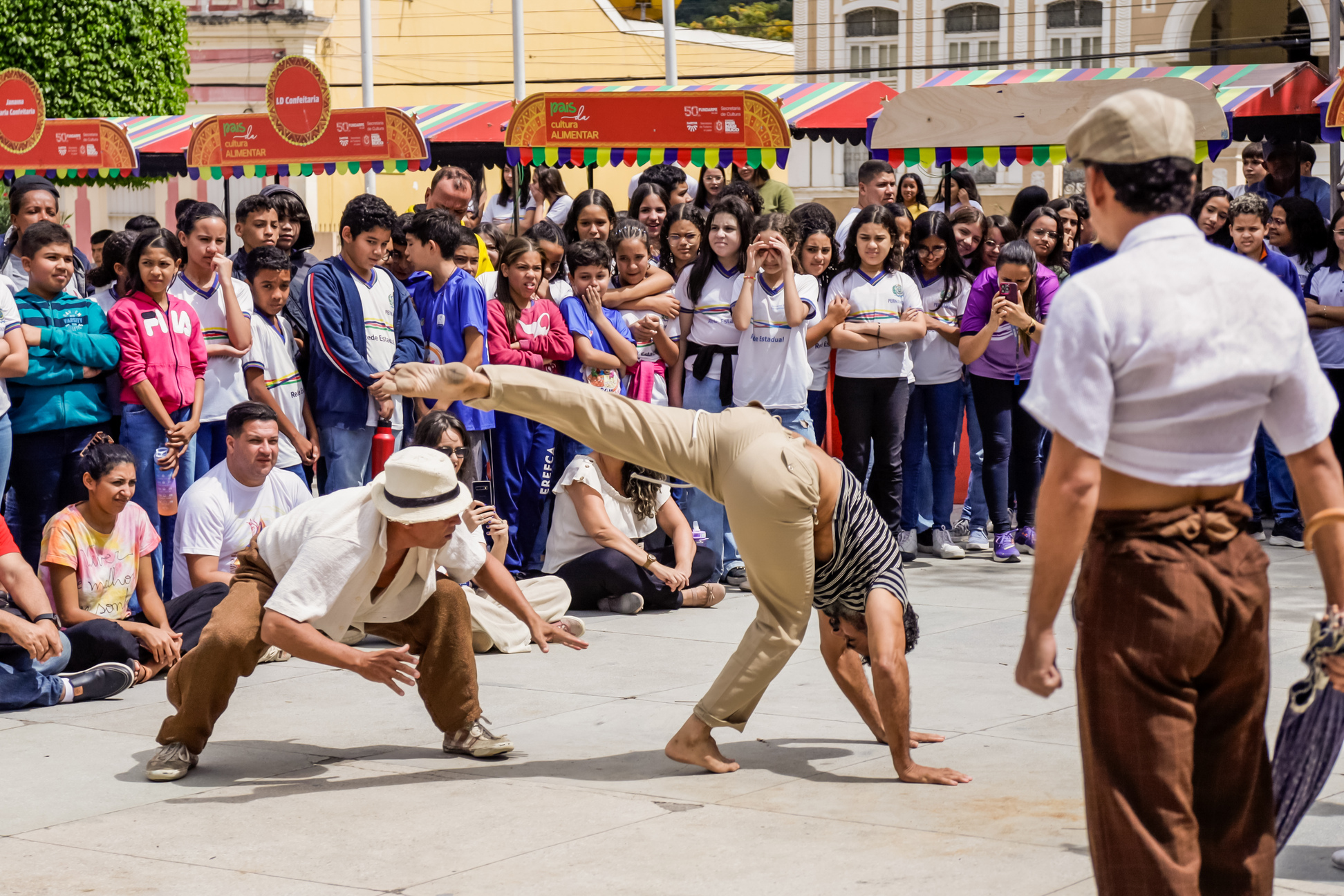 Trajados de vestimentas de trabalhadores dos anos 1950, eles apresentaram ao público pesqueirense o resultado de anos de pesquisa sobre a origem do frevo. O passo como ele nasceu: nas ruas, como um grito de liberdade de uma cama social historicamente oprimida e sob a repressão policial dos duelos de capoeira. Dança e explicações didáticas e lúdicas sobre o contexto da época se alternavam, encantando todos os presentes.