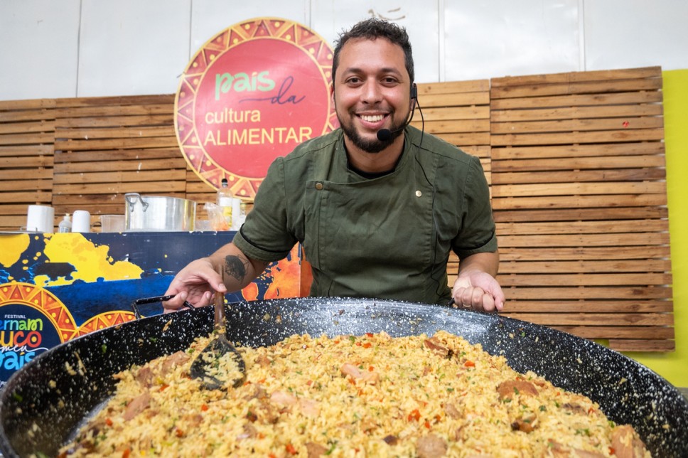 A culinária de Arcoverde foi a protagonista no segundo dia do País da Cultura Alimentar em Arcoverde, Sertão do Estado, neste sábado (24). Realizado mais uma vez no Centro de Gastronomia e Artesanato da cidade, o polo desenvolveu duas ações com o chef Rafael Diniz e com a Coperativa de Carrapana de Arcoverde.
