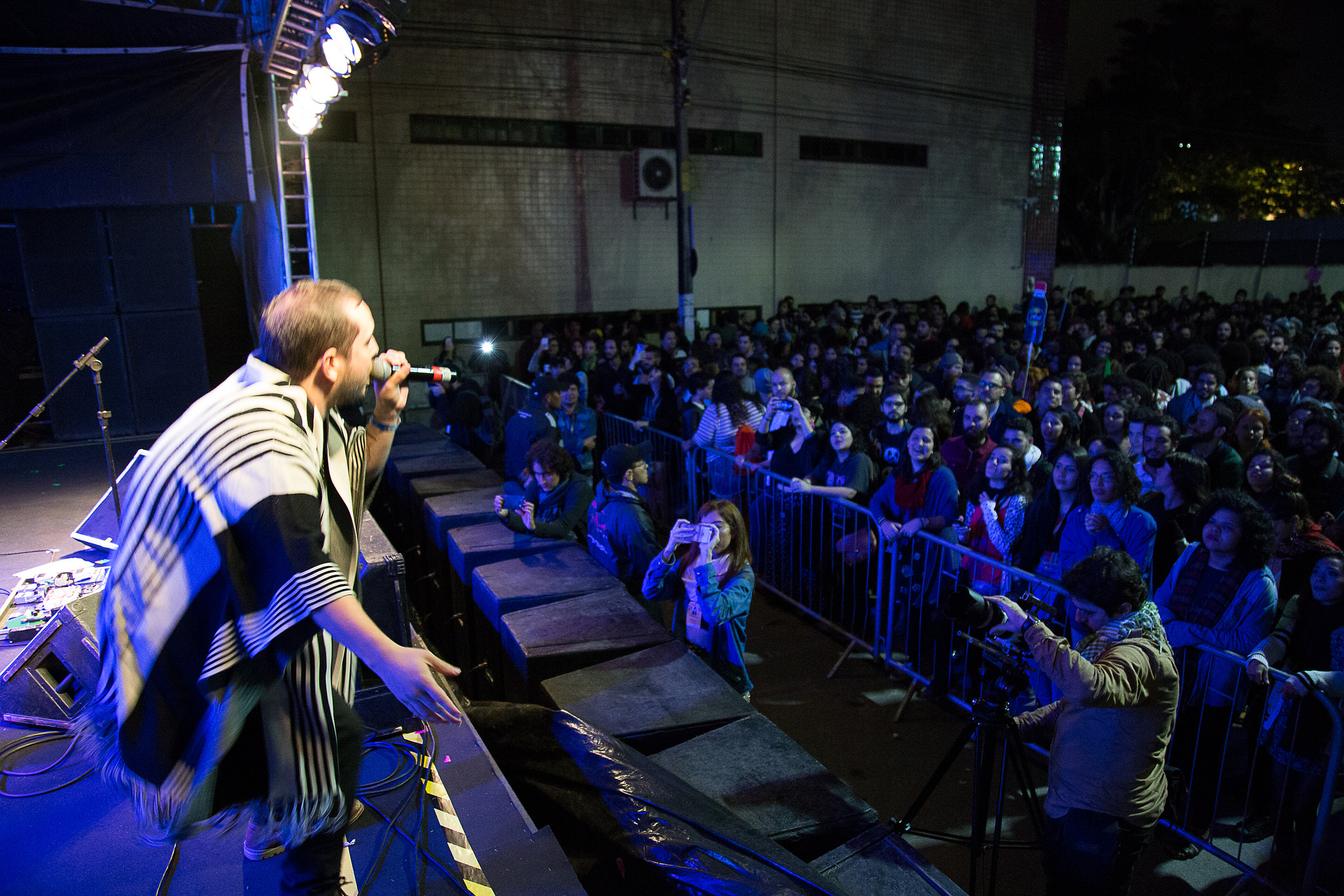 O mapa de palco de Curumin, por si só, já surpreende o expectador. Baterista e cantor, ele coloca seu instrumento no protagonismo da apresentação – em contrapartida ao não destaque usualmente dado aos bateristas. Durante todo o show, a plateia se mostrou afinada com o artista, cantando em alto e bom som as canções do novo disco e clássicos como Vem Menina, Compacto, Caixa Preta e Vestido de Prata.
