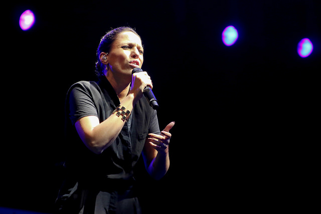 Carminho foi uma das atrações da noite de abertura do 24º FIG, na noite desta quinta (18). A presença cativante da cantora, o caráter envolvente da música que ela gorjeia, altiva e, ao mesmo tempo, delicada, hipnotizaram o público que esteve presente, no Palco Mestre Dominguinhos. Além disso, seus predicados como intérprete, em muito apontam para um (re)encontro de duas culturas que se entrelaçam há mais de 500 anos, falando a mesma língua, não apenas no campo das palavras, mas, principalmente, dos sentimentos. A cantora apresentou um repertório que passeia pelos seus dois primeiros discos, “Fado” (2009) e “Alma” (2012) – o terceiro CD está para ser lançado em outubro.