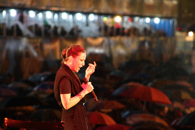 Mesmo diante da chuva, público manteve-se firme para contemplar o canto de Carminho