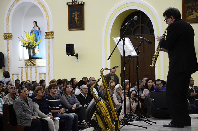 Da porrada sonora de Guizado para a suavidade e sofisticação do saxofone de Léo Gandelman e do piano de Eduardo Farias. Saindo do Parque Ruber Van Der Linden, ainda era possível ir à catedral para acompanhar a segunda apresentação da noite de domingo por lá. O Duo Recitalista, formado por Gandelman e Farias, impressionou pela qualidade timbrística dos instrumentistas como pela execução das músicas.