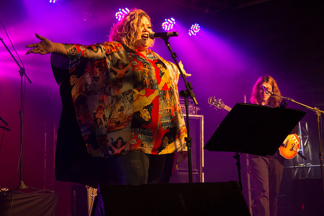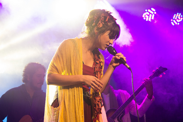 Natural de Londrina, Paraná, a cantora e atriz Simone Mazzer soltou o vozeirão no Palco Pop, fazendo interpretações inesquecíveis de músicas como “Vaca Profana”, de Caetano Veloso e “Essa Mulher”, que canta com Elza Soares no seu disco “Férias em Videotape”. Simone cantou acompanhada por Marco Scolari (piano e direção musical), Arthur Martau (baixo) e Rafael Rocha (bateria). Tocaram músicas de Itamar Assumpção, Assis Valente, Walter Franco, Ava Rocha, numa apresentação grandiosa, digna de uma diva. “Sinceramente acho um ato heroico atualmente no nosso país um festival desse porte. Acho muito importante culturalmente, socialmente, politicamente que esse festival tenha se mantido e esteja acontecendo hoje”, declarou Simone, que participou pela primeira vez do FIG neste ano.