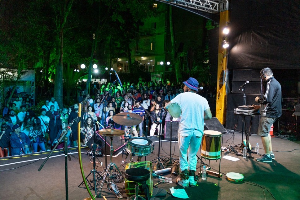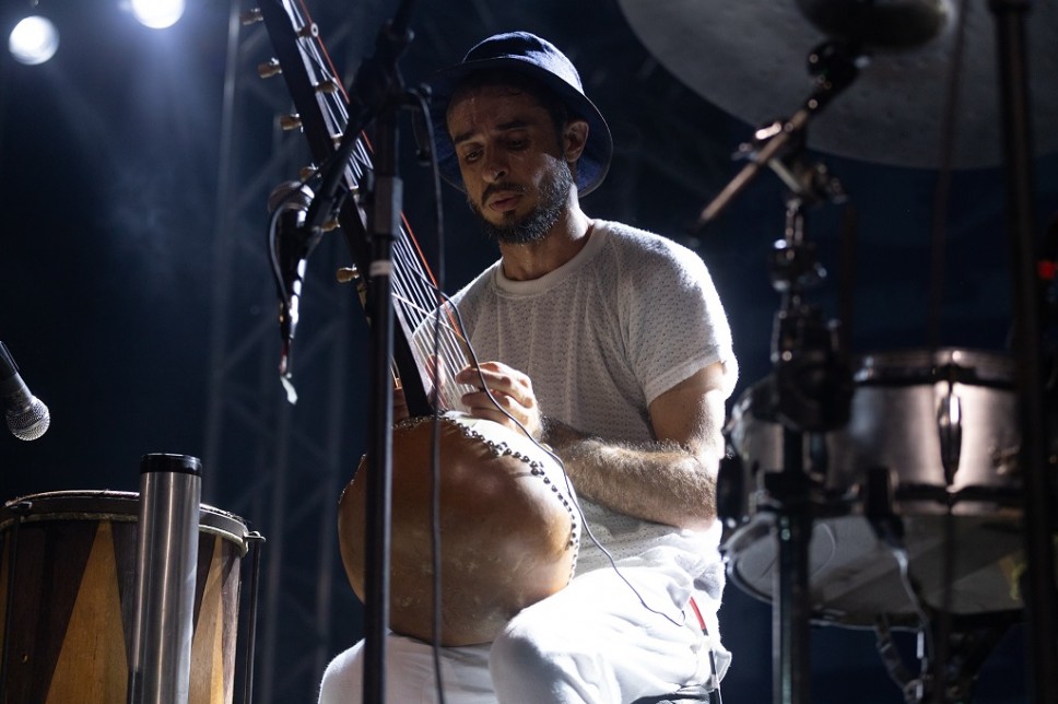 A exemplo do mestre Naná Vasconcelos, Gilú é um músico que ele próprio, em carne e osso, confunde-se no palco com o vasto acervo de instrumentos percussivos e de caminhos sonoros que trilha em suas composições. A mistura com a eletrônica potencializa ainda mais os resultados. O público entendeu e interagiu o tempo inteiro no Pau Pombo. Quem estava sentado ficou de pé e todo mundo caiu na dança.