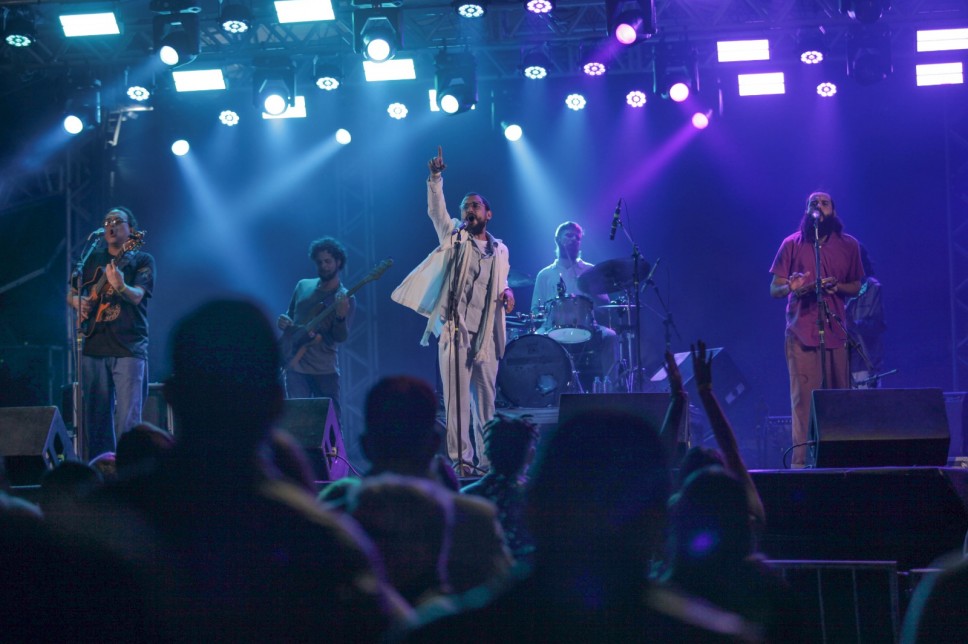 Em seguida, o Em Canto e Poesia transbordou até a alma mais seca da plateia com o lirismo que mistura a tradição poética do Sertão do Pajéu aos limites da música pop. Banda formada pelos netos de Louro do Pajeú, notório poeta e repentista da região, o grupo é conduzido pelos irmãos Antônio, Greg e Miguel Marinho.