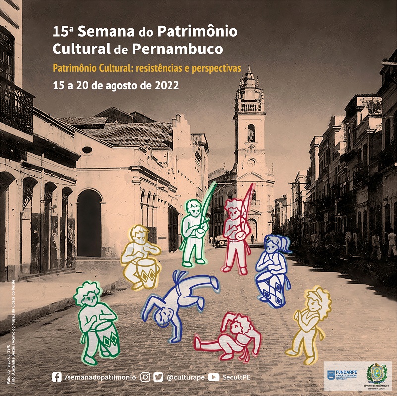 Com o tema “Patrimônio Cultural: Resistências e Perspectivas”, a Secretaria Estadual de Cultura (Secult-PE) e a Fundação do Patrimônio Histórico e Artístico de Pernambuco (Fundarpe) realizam a 15ª edição da Semana do Patrimônio Cultural de Pernambuco, um dos eventos estaduais sobre a preservação do patrimônio cultural que, neste ano, voltará a ter atividades em formato presencial. De 15 a 30 de agosto, e com a participação de 31 municípios pernambucanos, serão promovidas mais de 209 atividades, tais como ações educativas, cursos, exposições, lançamento de livros, oficinas, palestras, rodas de diálogo, seminários e visitas guiadas. Clique aqui e confira a programação completa.