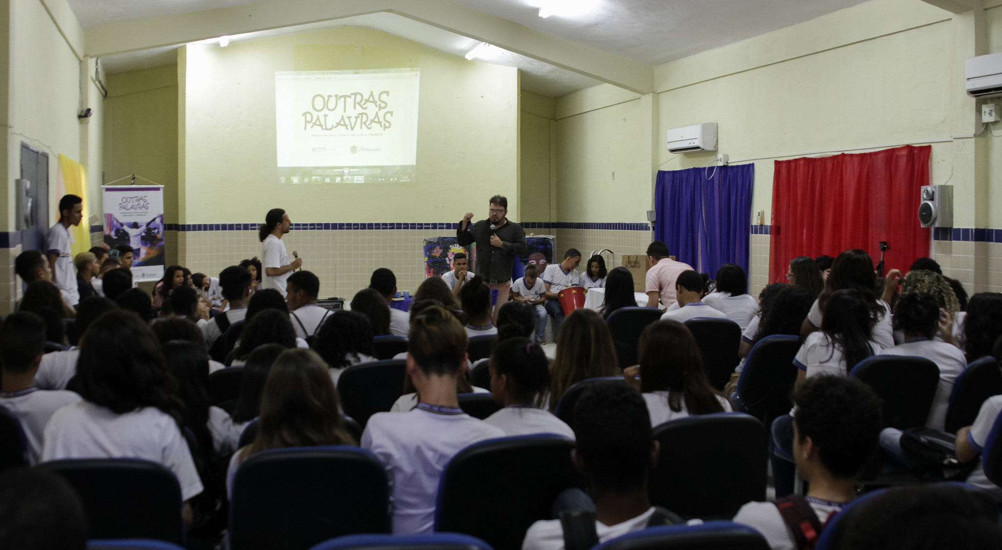 Manter a disciplina dentro do ambiente escolar é, por vezes, uma tarefa complicada. Na agitação da idade, os alunos tendem a perder fácil a atenção caso o assunto não seja tão interessante. Por essa razão se faz cada vez mais necessário criar condições e estratégias para atrair este olhar, revolucionar a educação e fazer com que os jovens entendam a importância dela como uma ferramenta de formação cidadã e humana. Este é um dos papéis do Outras Palavras, iniciativa da Secretaria de Cultura de Pernambuco e Fundarpe que atingiu, na última quinta-feira (21), a marca de 358 escolas públicas atendidas no estado. Desta vez, a instituição que recebeu o projeto foi a EREM Edson Moury Fernandes, na Muribeca, em Jaboatão dos Guararapes, com a presença do escritor Delmo Montenegro e do grupo de rap Aliados CP.