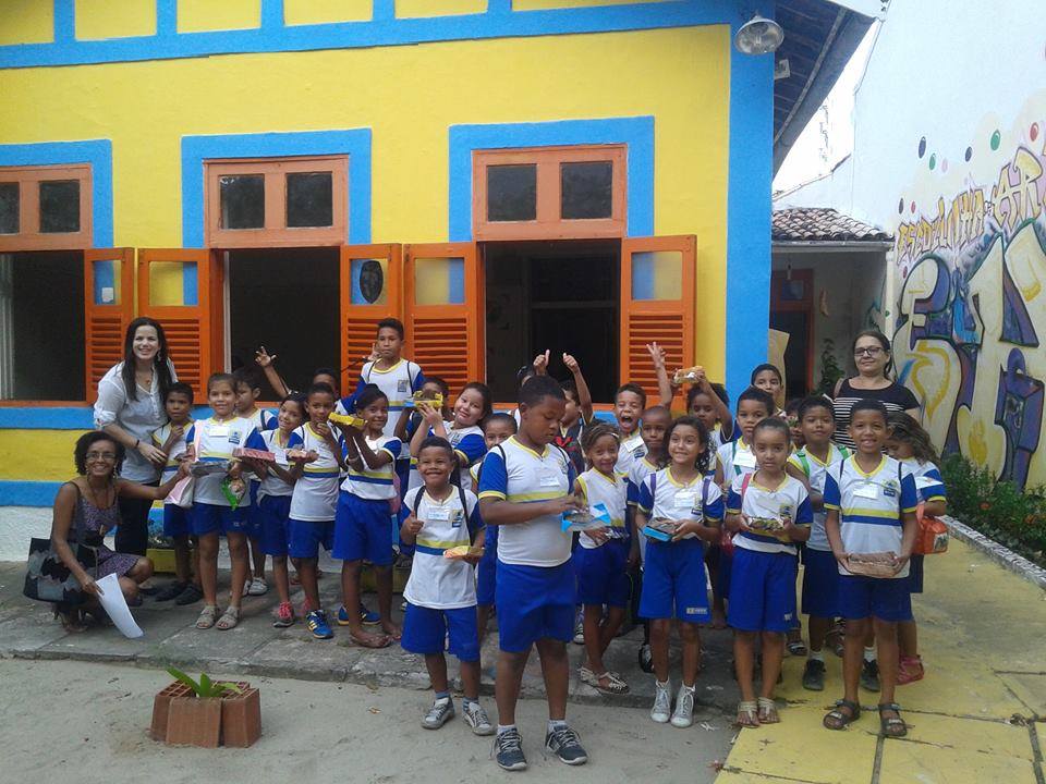 Alunos da Escola Municipal Antônio Tibúrcio durante atividade no espaço cultural voltado para crianças.