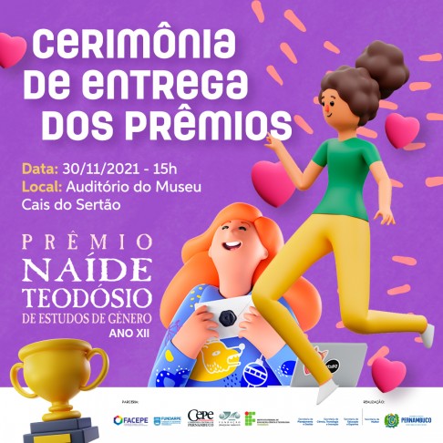 A cerimônia de entrega da 12ª edição do Prêmio Naíde Teodósio de Estudos de Gênero, único concurso que premia trabalhos e pesquisas sobre gênero e suas interfaces no Estado de Pernambuco, será nesta terça-feira (30), a partir das 15h, no Auditório do Museu Cais do Sertão (Avenida Alfredo Lisboa, s/n – Bairro do Recife). Serão pagos cerca de R$ 60 mil reais para estudantes do ensino médio e técnico subsequente, graduação/pós-graduação e professores (as). Na ocasião, o governador Paulo Câmara vai assinar a Ordem de Serviço da Reforma da Casa Abrigo Marici e o Termo de Compromisso de Lançamento do Edital de Requalificação do Centro da Mulher Metropolitana Júlia Santiago.
