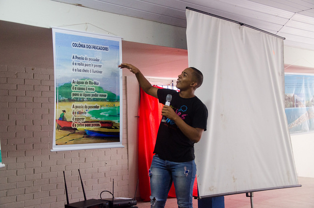 Na abertura, alunos da EREM João Bezerra declamaram poesias sobre o bairro de Brasília Teimosa e emocionaram todo o público presente, inclusive escritores e artistas convidados.