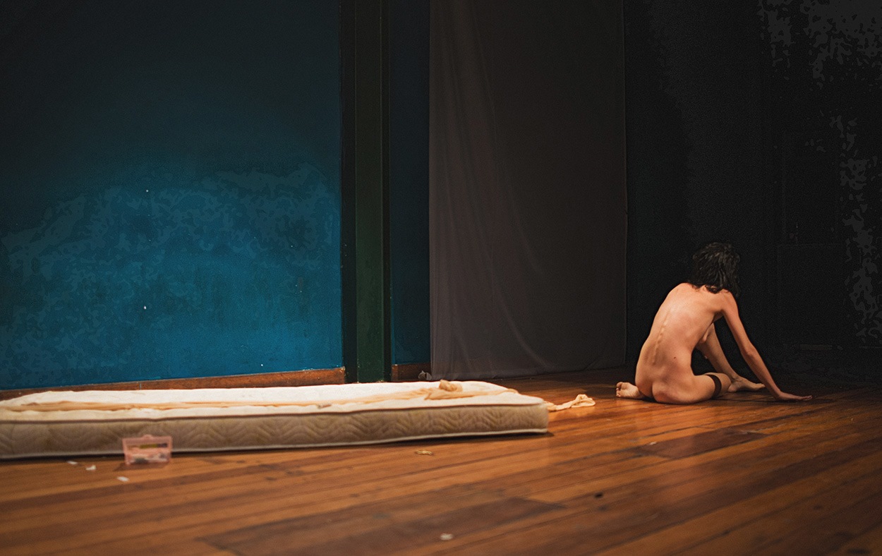 Com o corpo todo envolto em meia calça, a artista executa uma costura entre sua “segunda pele” e um colchão, num gestual minucioso de união entre esses dois tecidos, para em seguida proporcionar o rompimento do vinculo construído entre esses corpos, a performance nos sugere reflexões a cerca do corpo, gênero e questões políticas que emergem da ação.