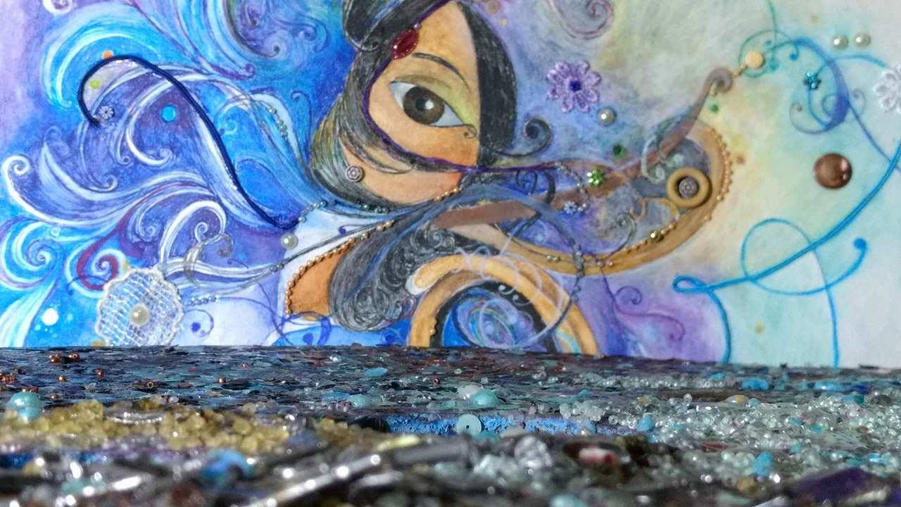 Tendo como inspiração textos inéditos da escritora Fernanda Limão, Alinhavos, faz mergulho na essência do ser humano por meio de ilustrações que une colagem e aquarela, na tentativa de costurar histórias. Seguindo a ideia de narrativa apresentada por Dom Casmurro, rememora a própria existência, estabelece paralelismo com o mundo de coisas miúdas: de plantas, terra e bichos, que aqui, desperta a memória afetiva sendo capaz de atar as duas pontas da vida, no olhar infinito de uma menina, que rodopia ao som de pássaros e alcança a Lua. Por horas é Capitu, se faz mistério e vira Água.
