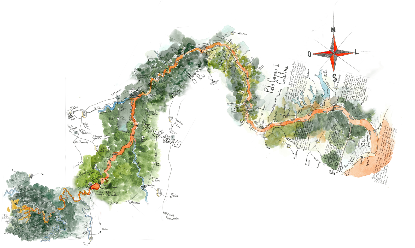 A exposição nasce de uma série de viagens realizadas ao longo dos anos de 2015 e 2016 pelo Rio Doce. Nelas, dois pesquisadores e ilustradores, Artur Sgambatti e Vladimir Ospina, percorreram a totalidade do rio – da foz à cidade de Mariana, para realizar levantamento dos impactos sociais sentidos pelas comunidades ribeirinhas atingidas pela avalanche de lama ocasionada pelo rompimento de barragens de uma mineradora. Tal processo imersivo evidenciou a diversidade, não apenas cultural e geográfica do território, como também os impactos sentidos ao longo do rio, agora morto.