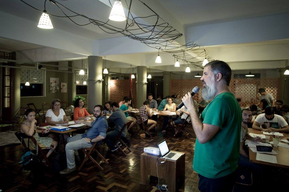 Turma do Curso de Elaboração e Gestão de Projetos Culturais, sendo ministrada pelo produtor e designer Ticiano Arraes, na sede da Orbe Coworking.
