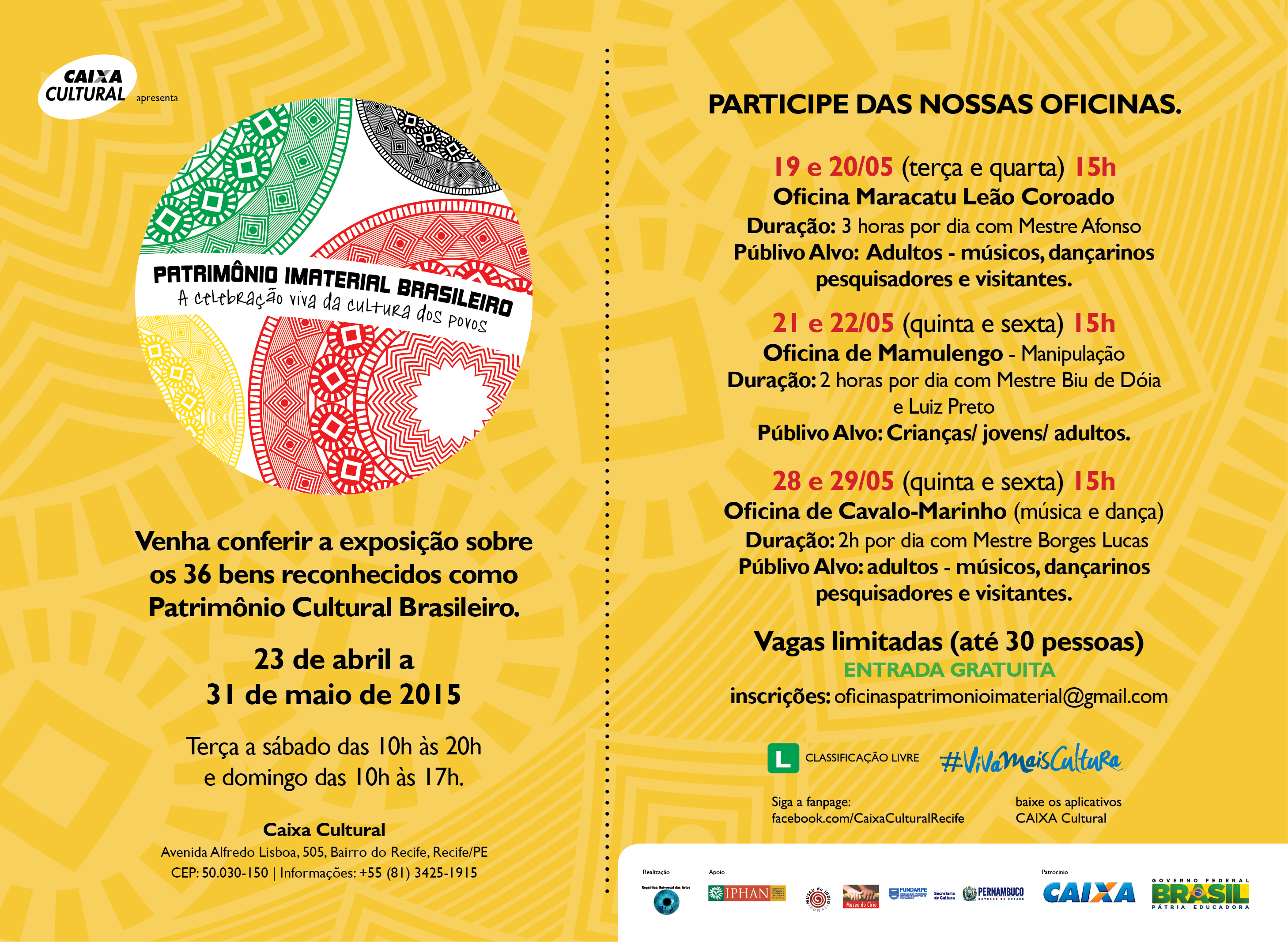 Inscrições gratuitas e limitadas: oficinaspatrimonioimaterial@gmail.com