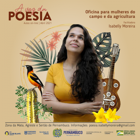 A oficina “A Voz da Poesia”, contemplada pelos recursos da Lei Aldir Blanc em Pernambuco, tem o objetivo de estreitar o contato das participantes com a poesia popular, por meio de declamações, leituras e interações, destacando a voz poética além das regras. Serão trabalhadas estrofes curtas e poemas de vários poetas e poetisas sobre temáticas diversas.